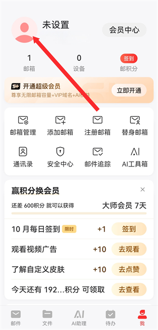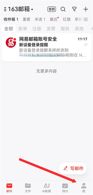 1、打開網(wǎng)易郵箱大師,點擊底部我進(jìn)入個人頁面。