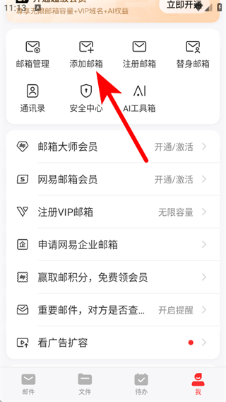 2、在個人的頁面中,點擊添加郵箱,進(jìn)入郵箱添加頁面。
