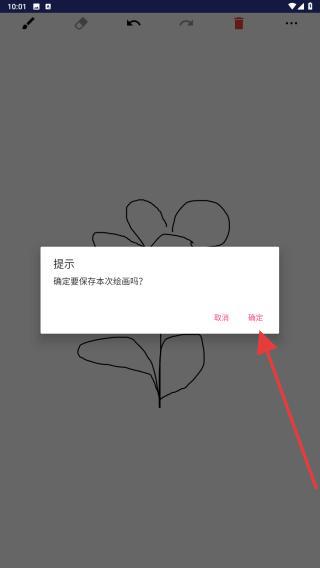 3、點(diǎn)擊后,會(huì)彈出提示確定要保存本次繪畫嗎,點(diǎn)擊確定按鈕。