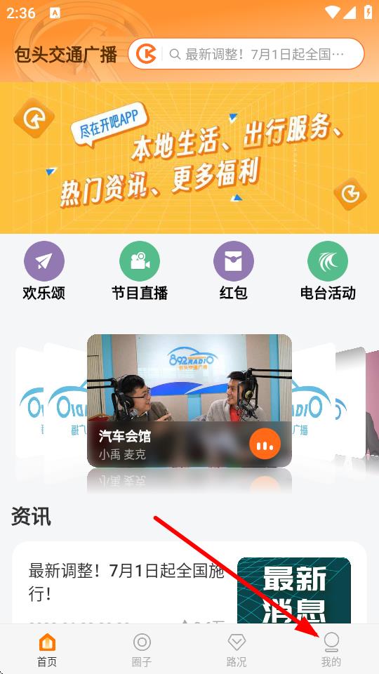 4、當(dāng)我們選擇完畢后,會自動(dòng)回到首頁,即可切換到所選的電臺。