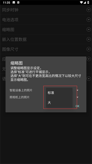 4、在展開(kāi)的選項(xiàng)中,選擇大或者標(biāo)準(zhǔn)尺寸,然后點(diǎn)擊窗口右下角的OK按鈕。