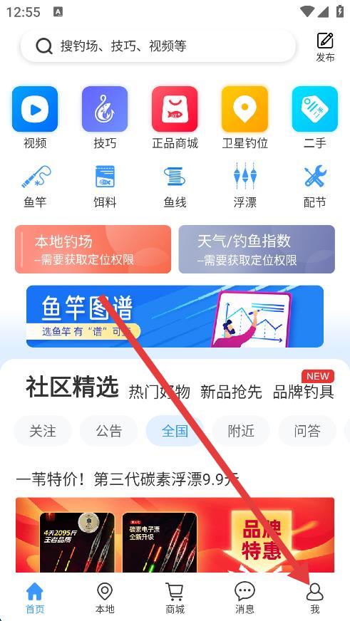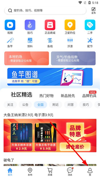 1、打開釣魚人,點擊底部導(dǎo)航欄最右側(cè)的我選項。