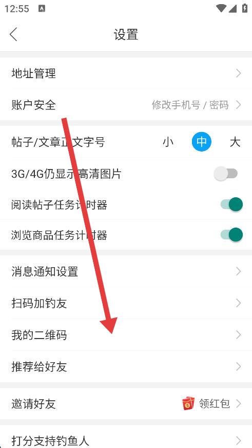 3、進(jìn)入設(shè)置頁面后,找到并點擊我的二維碼選項。