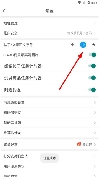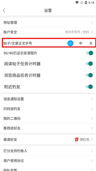 3、在設(shè)置頁面找到帖子文章正文字號選項。