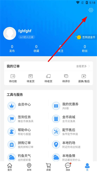 1、在釣魚人app界面點擊我選項,進(jìn)入個人頁面。