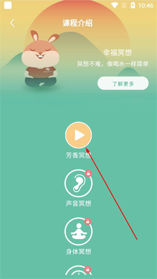 2、在課程介紹頁點擊具體冥想內(nèi)容的播放按鈕,進(jìn)入冥想頁面。