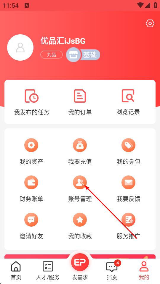 1、打開一品眾包APP,點擊底部導航欄中的我的。
