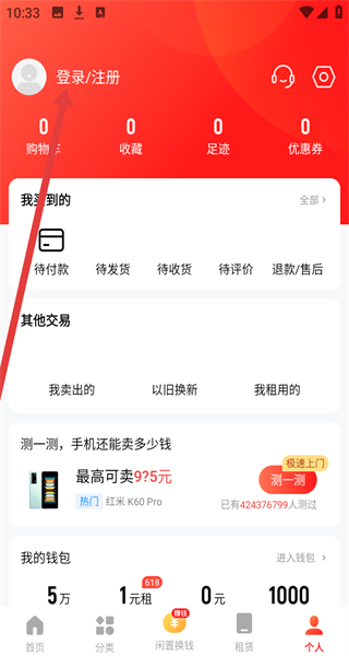 2、在進(jìn)入到我的個(gè)人主頁后,可以點(diǎn)擊上方登錄按鈕,準(zhǔn)備進(jìn)行登錄操作。