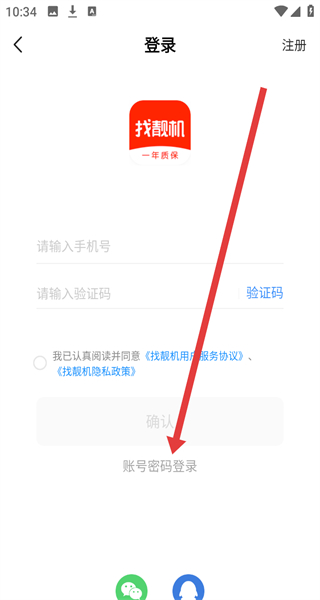 3、在跳轉(zhuǎn)到登錄頁面時(shí),可以點(diǎn)擊下方賬號密碼登錄按鈕,進(jìn)行切換登錄方式。