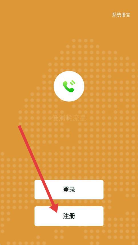 1、打開北瓜電話App,在初始界面中點擊注冊按鈕。