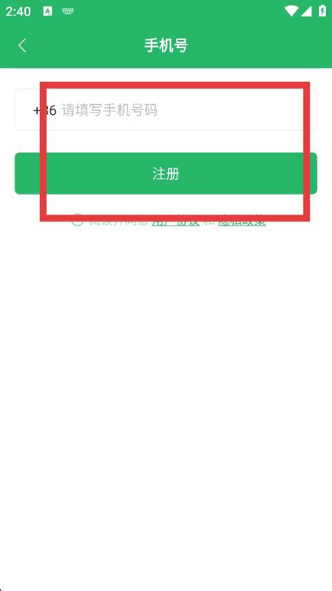 2、在手機號輸入頁面,填寫手機號碼,點擊注冊按鈕。