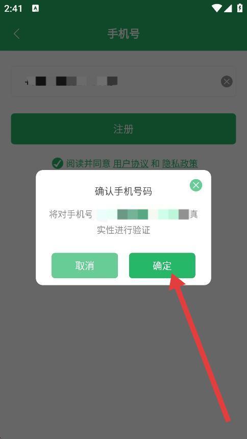 3、彈出的提示框中點擊確定,對手機號的真實性進行驗證。