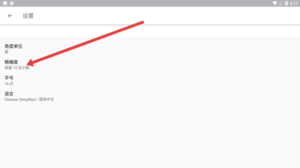 2、進(jìn)入設(shè)置界面后,找到精確度選項(xiàng),點(diǎn)擊該欄,展開小數(shù)保留位數(shù)的選擇列表,準(zhǔn)備修改計(jì)算結(jié)果的精度。