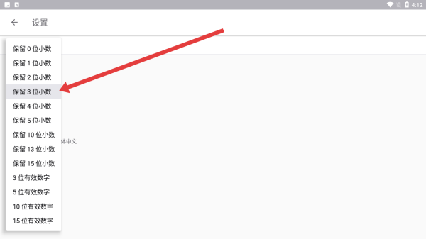 3、在精確度列表中選擇保留3位小數(shù),完成設(shè)置后返回計(jì)算器主頁,即可按照新精度開始數(shù)學(xué)運(yùn)算。