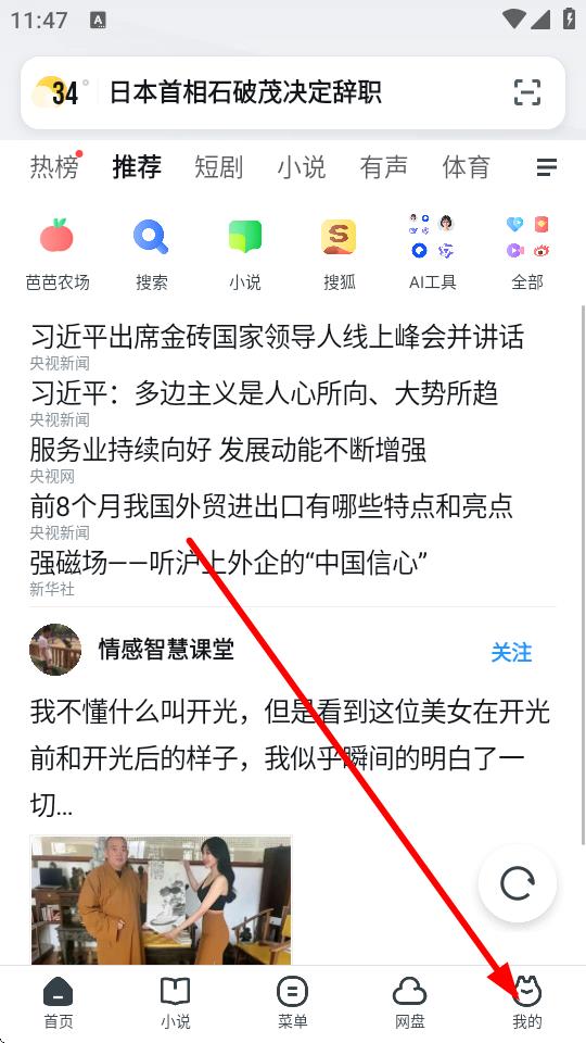 1、打開uc瀏覽器,點擊底部導航欄中我的選項,進入個人中心頁面。