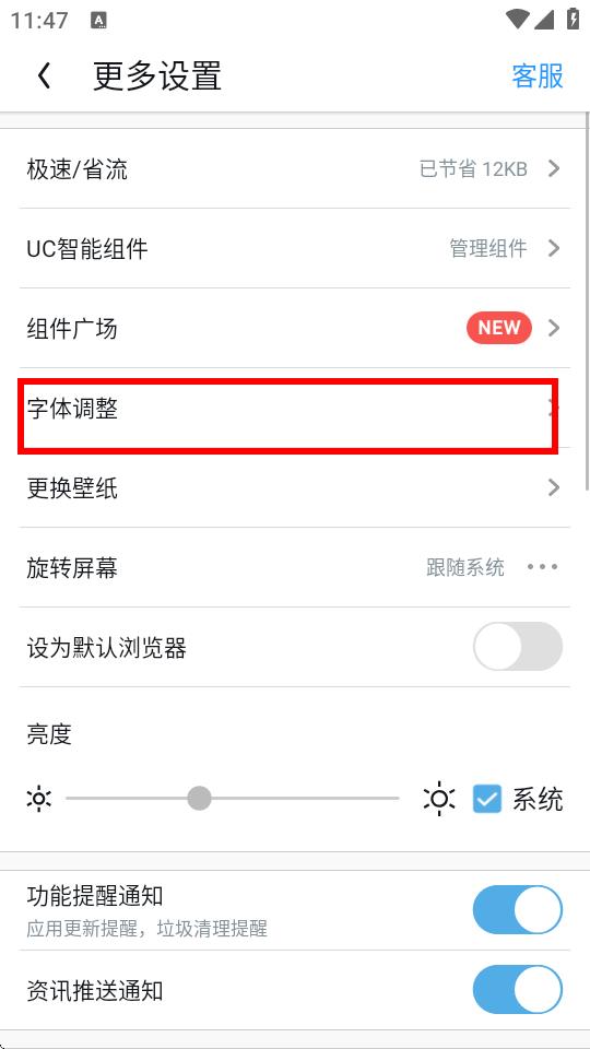 3、在設置界面中,找到并點擊字體調(diào)整選項。