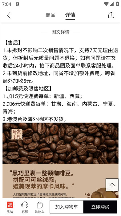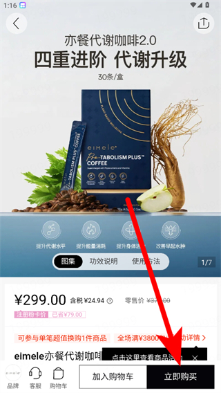 4、進(jìn)入商品詳情頁(yè)面后,可點(diǎn)擊加入購(gòu)物車(chē)或立即購(gòu)買(mǎi),完成商品選擇流程。
