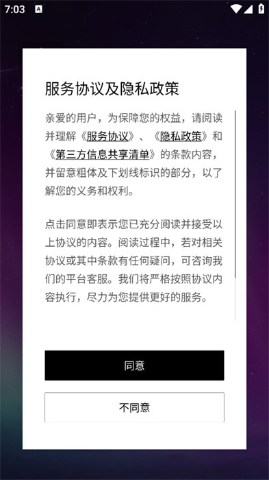 1、在打開(kāi)App后,可以通過(guò)點(diǎn)擊彈窗中的同意按鈕,進(jìn)入使用。