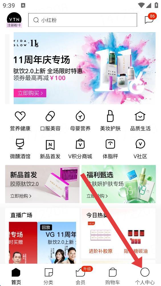 1、點(diǎn)擊底部導(dǎo)航欄中的個(gè)人中心,進(jìn)入個(gè)人中心頁(yè)面。