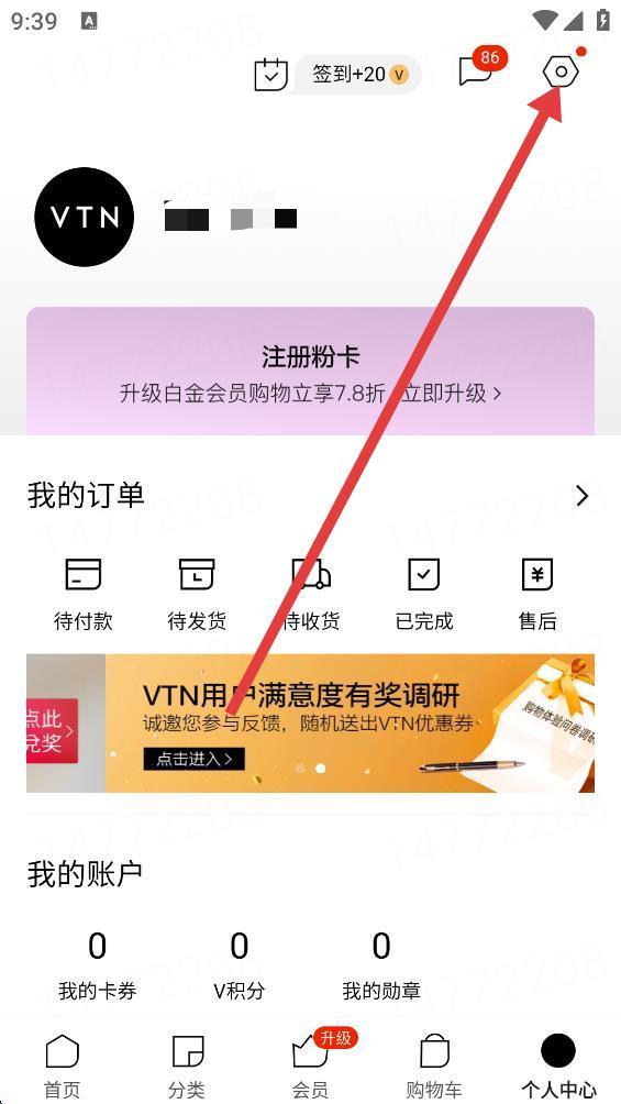2、在個(gè)人中心頁(yè)面右上角,點(diǎn)擊設(shè)置圖標(biāo),進(jìn)入設(shè)置界面。