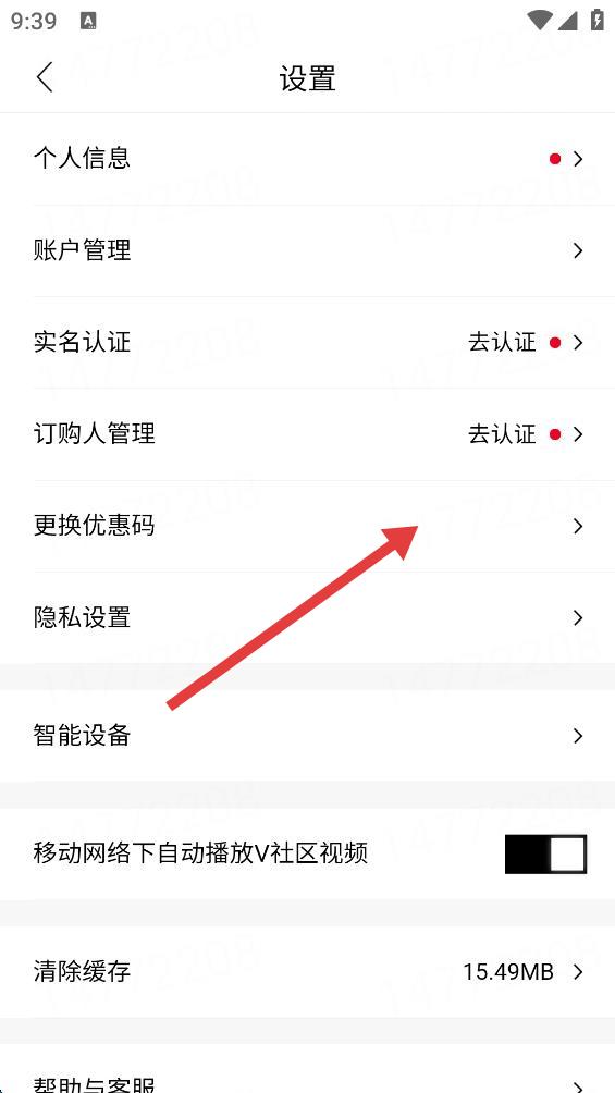 3、在設(shè)置界面中,找到并點(diǎn)擊更換優(yōu)惠碼選項(xiàng)。