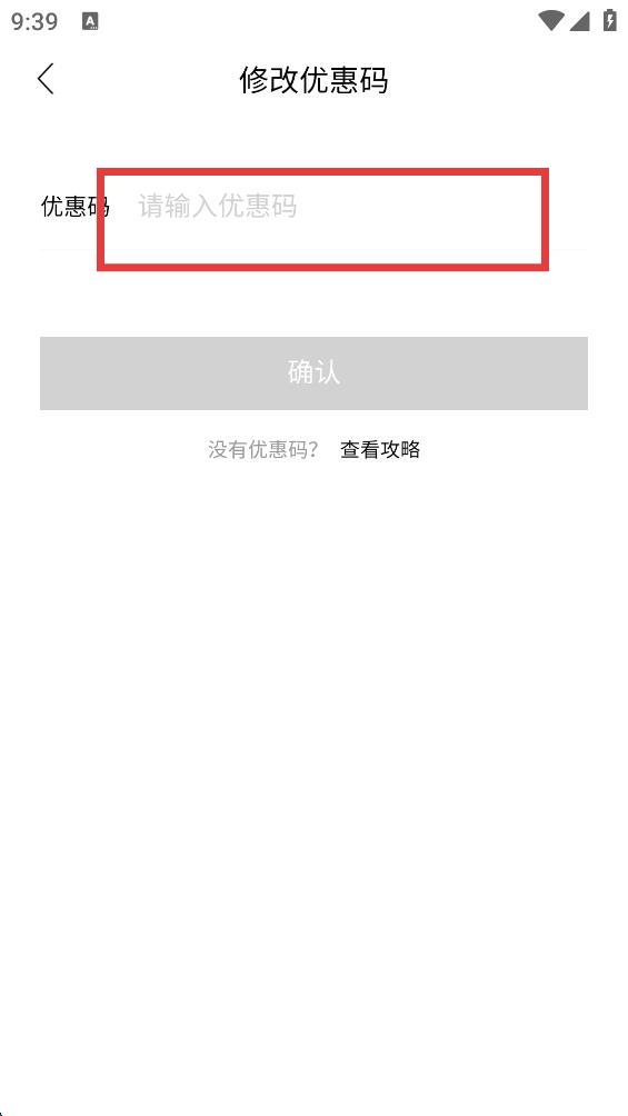 4、進(jìn)入修改優(yōu)惠碼頁(yè)面后,點(diǎn)擊輸入框即可輸入優(yōu)惠碼。
