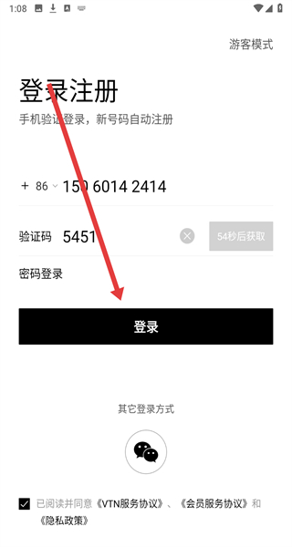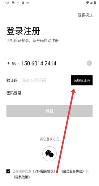 4、在獲取到驗(yàn)證碼并填寫(xiě)后,可以點(diǎn)擊登錄按鈕,完成注冊(cè)操作。