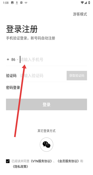 2、在進(jìn)入到登錄注冊(cè)頁(yè)面中,可以點(diǎn)擊輸入框填寫(xiě)新手機(jī)號(hào)碼,進(jìn)行注冊(cè)登錄操作。