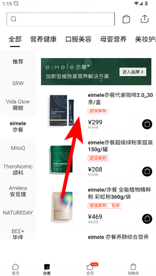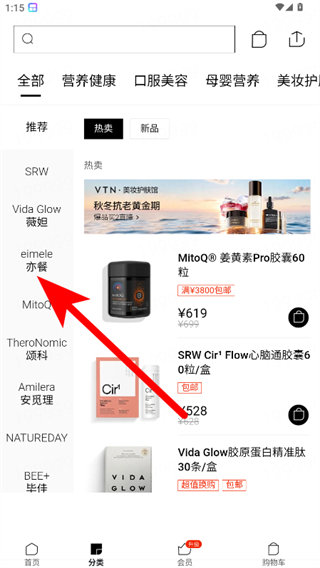 2、在商品分類頁(yè)面,選擇要查看的品牌,如亦餐。