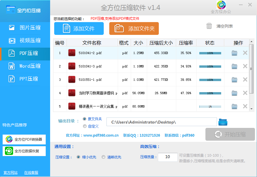 全方位壓縮軟件是一款功能強(qiáng)大的文件壓縮工具,支持視頻、圖片以及音樂(lè)等文檔在線(xiàn)壓縮,非常簡(jiǎn)單的操作方式可以快速壓縮所需要的文件內(nèi)容。