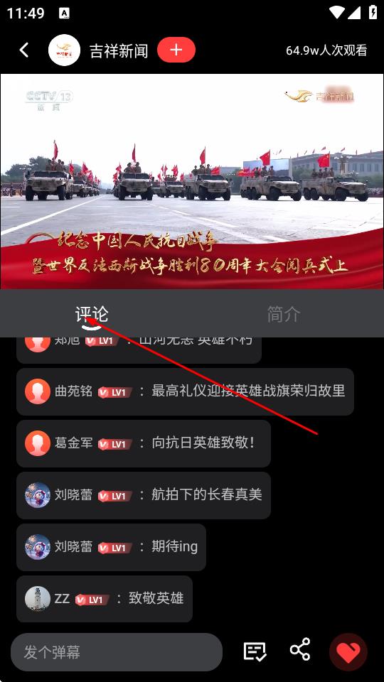 4、觀看過程中,點(diǎn)擊屏幕下方的評(píng)論標(biāo)簽,可查看其他用戶的評(píng)論。