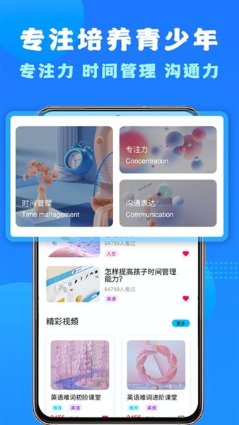專為學生打造的全能培養(yǎng)課程教學app,專注于除課本外的人文和興趣培養(yǎng)學習,打造學生全面發(fā)展,全能型培養(yǎng),應用內包含時間管理、古詩詞、科學記憶、編程等課程,教學氛圍輕松有趣,讓孩子在學習的過程中獲得更多的快樂。