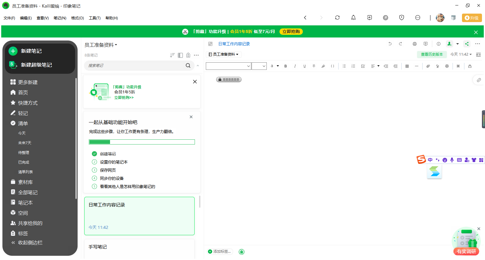 EverNote電腦版是在國外非常著名的筆記軟件,界面與功能十分類似onenote。EverNote不僅具備強大的筆記捕捉功能,還采用了獨特的分類方式,而且支持filter的自動整理、即時搜索。