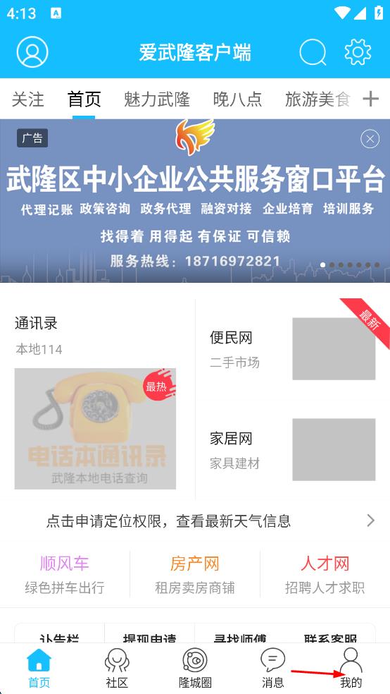 1、打開愛武隆客戶端,點擊頁面右下角“我的”選項,進(jìn)入個人中心頁面。