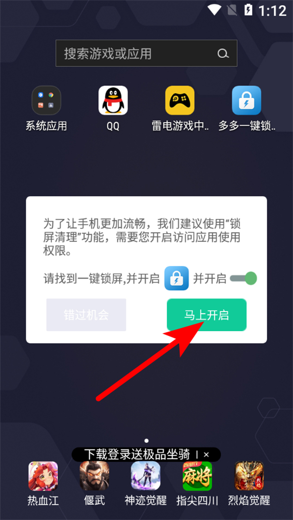 2、在權(quán)限開啟提示頁面,點擊馬上開啟按鈕,進(jìn)入有權(quán)查看使用情況的應(yīng)用列表頁面。