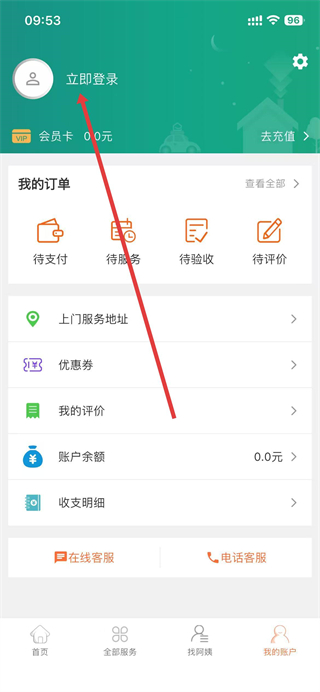3、在我的賬戶頁面,點(diǎn)擊頭像位置的立即登錄按鈕。