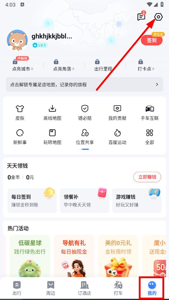 1、打開百度地圖應用,點擊底部導航欄中的我的進入個人界面。