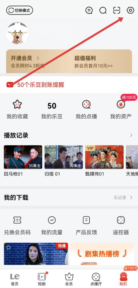 1、打開樂視視頻點擊底部導(dǎo)航欄的我的,找到并點擊設(shè)置圖標(biāo),進入設(shè)置的界面。