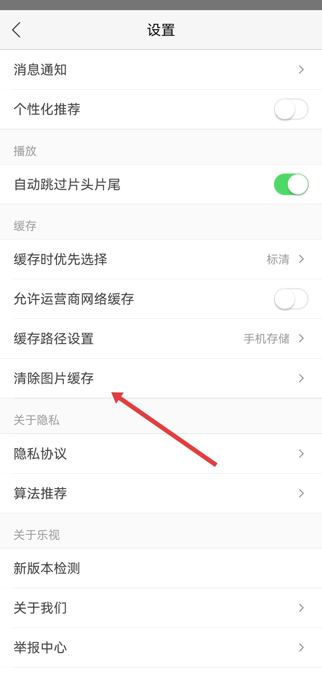 2、進入設(shè)置的界面后,需要找到清除圖片緩存的選項,點擊該選項。