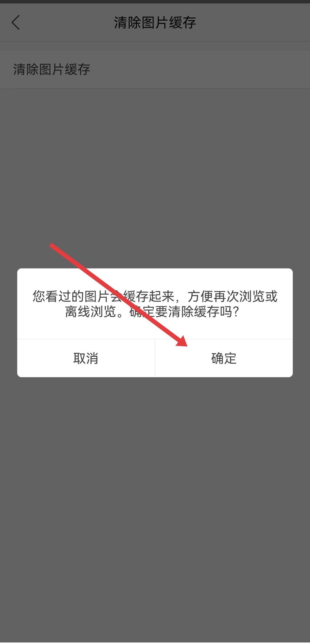 3、仔細閱讀提示框中的內(nèi)容后,若確認要清理圖片緩存以釋放存儲空間,點擊確定按鈕。