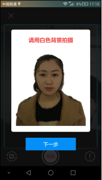 第一步:拍攝免冠一寸照的時(shí)候需要使用手機(jī)前置攝像頭近景拍照,免冠、免圍巾一寸照需要頭像清晰、照片背景為白色、臉部無遮擋,拍攝后如果不清晰可以返回重新拍照;