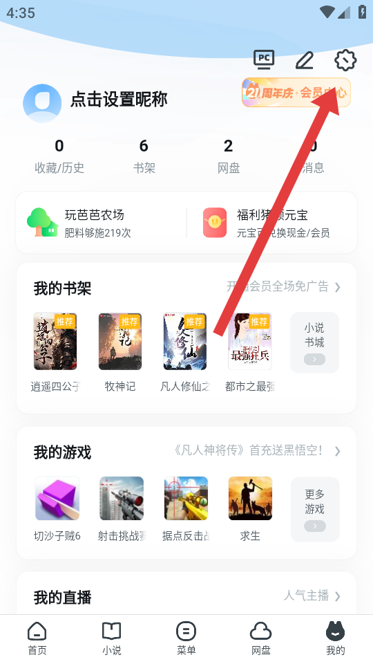 2、在個(gè)人中心頁(yè)面點(diǎn)擊右上角齒輪形狀的設(shè)置圖標(biāo),進(jìn)入更多設(shè)置。