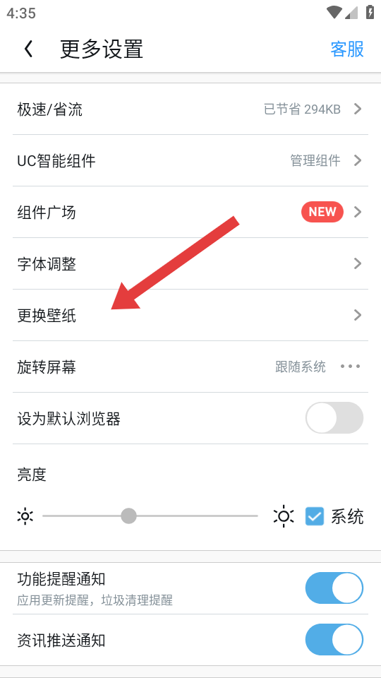 2、在更多設(shè)置的頁(yè)面中,需要下滑找到并點(diǎn)擊更換壁紙的選項(xiàng),進(jìn)入壁紙中心的界面。