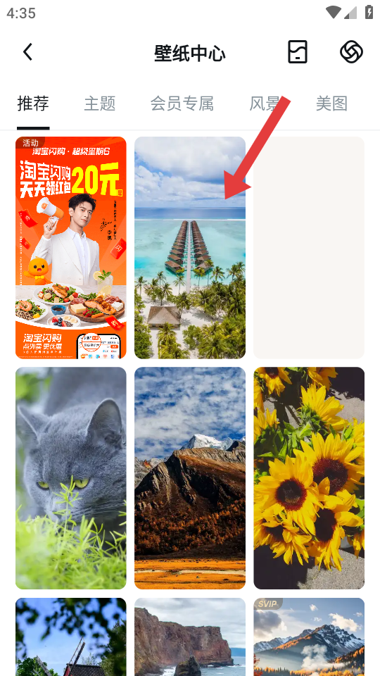 3、在壁紙中心頁(yè)面內(nèi),選擇喜歡的壁紙并進(jìn)行點(diǎn)擊,按提示完成設(shè)置即可更換瀏覽器壁紙。