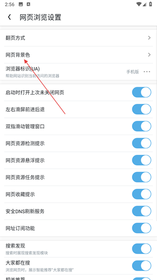 3、在設(shè)置界面里,找到網(wǎng)頁(yè)瀏覽設(shè)置選項(xiàng)并點(diǎn)擊,進(jìn)入網(wǎng)頁(yè)瀏覽設(shè)置頁(yè)面。
