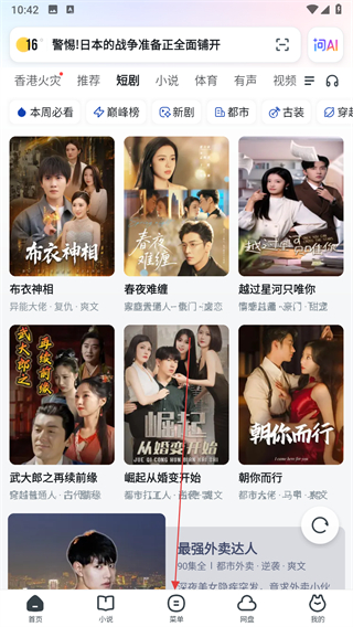 1、打開UC瀏覽器,點(diǎn)擊底部導(dǎo)航欄的菜單選項(xiàng),展開功能操作面板。