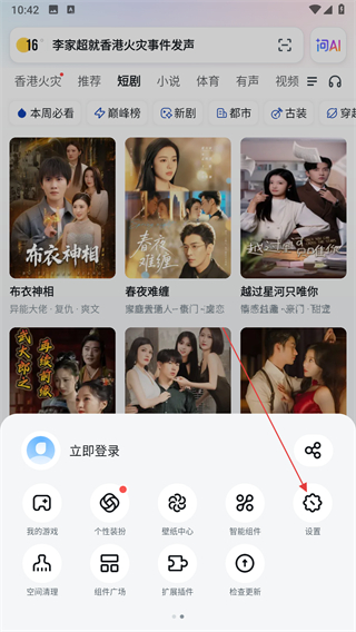 2、在功能面板中,找到設(shè)置選項(xiàng)并點(diǎn)擊,進(jìn)入瀏覽器的設(shè)置界面。