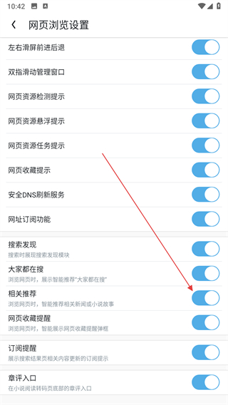 4、在該頁(yè)面中,找到相關(guān)推薦對(duì)應(yīng)的開關(guān),點(diǎn)擊關(guān)閉即可停止內(nèi)容的推送。