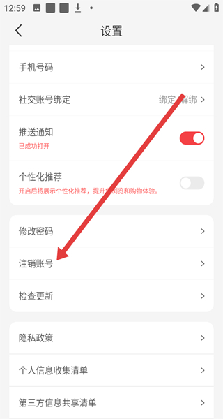 2、設(shè)置頁面點(diǎn)擊“注銷賬號(hào)”,進(jìn)入注銷賬號(hào)頁面。