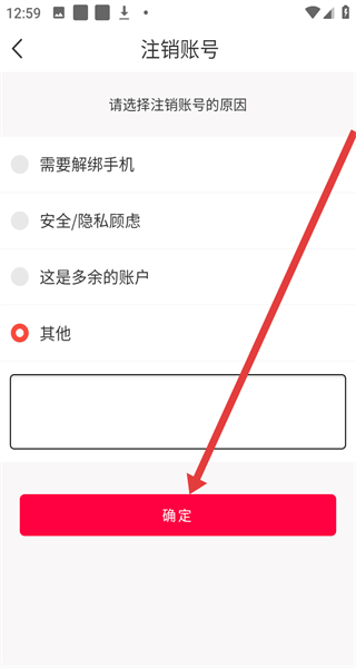 3、注銷賬號(hào)頁面選擇注銷原因,點(diǎn)擊“確定”,進(jìn)入驗(yàn)證手機(jī)號(hào)碼頁面。
